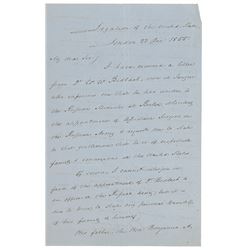 ALS, four pages on two adjoining sheets, 5.25 x 8.25, December 22, 1855. Letter to Hon. Peter D. Vroom, written while serving as minister to the Unite
