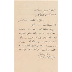 ALS, one page, 4.75 x 7.75, April 27, 1882. Letter to Messrs. Fitch & Fox, in full: “You are authorized to draw on me at three days signal for t...