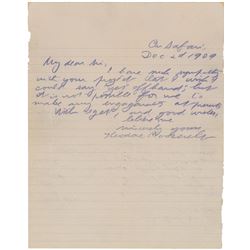 ALS in pencil, one page, 7.75 x 9.75, December 2, 1909. Letter to a Mr. Horne, written while “On Safari.” In full: “I have such sympathy with your pro