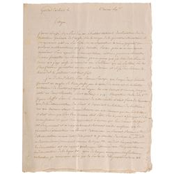 Handwritten letter in French sent to Lagrange by a mathematician, “Guillon,” three pages on two adjoining sheets, 6.5 x 8.25, 1798. The letter propose