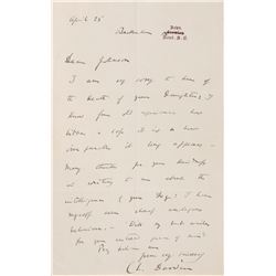 ALS signed “Ch. Darwin,” one page, 5 x 8, Down letterhead, April 25, no year but docketed 1871. Letter to “Johnson,” in full: “I am very sorry to hear