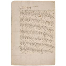 LS signed “Henry R,” one page both sides, 8.5 x 12, July 7, [1513]. Letter to army commander George Talbot, 4th Earl of Shrewsbury, encouraging him to