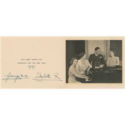 Royal Christmas and New year card from 1939, measures 11.5 x 8.25 open, featuring a wonderful Marcus Adams family portrait of King George and Queen El