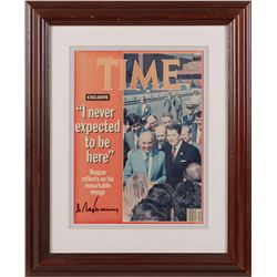 Limited edition cover of Time magazine from June 13, 1988, showing Ronald Reagan and Mikhail Gorbachev on the front cover, numbered 9/175, signed in b