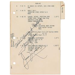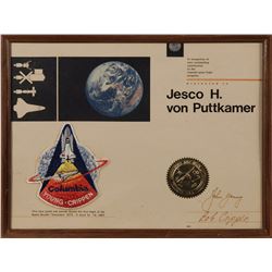 Three items: a flown two-sided checklist page carried on board STS-6, 10.5 x 8, dated March 25, 1983, signed and flight-certified on one side in blue