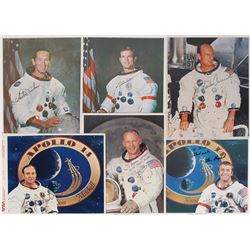 Excellent collection of five official NASA lithographs and one red-numbered photo of moonwalkers, 8 x 10 and 10 x 8, each signed in felt tip by the su