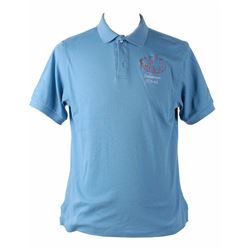Tom Jones’s blue Land’s End polo shirt worn and flown during the STS–68 mission, size medium, embroidered on the left breast in white thread, “Endeavo