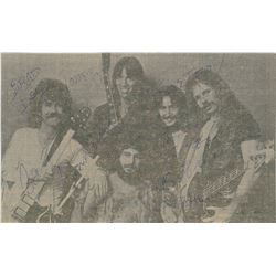 Vintage 6 x 3.75 newspaper photo of Boston, signed in ballpoint by Brad Delp, Tom Scholz, Barry Goudreau, Fran Sheehan, and Sib Hashian. In fine condi