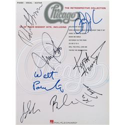 Chicago: The Retrospective Collection sheet music booklet for piano, vocal, and guitar, 9 x 12, 200 pages, signed on the front cover in blue and black