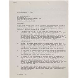 Two documents, seven total pages, 8.5 x 11, November 6, 1992, relating to an agreement between Namanco Productions and NBC Entertainment, in which the