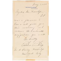 Scarce ALS as president, one page, 5.5 x 9.25, White House letterhead, May 3, 1924. Letter to De Lancey Kountze, in full: “It was a pleasure to have a