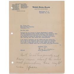 Important TLS, one page, 8 x 10.5, United States Senate letterhead, September 11, 1944. Letter to reporter Joseph Lieb written just two months after h