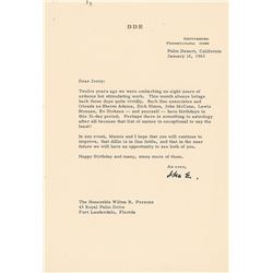 TLS signed “Ike E.,” one page, 7 x 10.25, personal letterhead, January 16, 1965. Letter to Eisenhower’s former White House Chief of Staff Wilton B. Pe