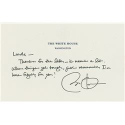 Scarce ALS as president, one page, 6.25 x 4.25, presidential stationery card, January 26, 1995. Letter to Henry Leon and Judy Ritzenthaler, in full: “