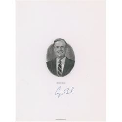 Handsome engraved portrait of President Bush by the Bureau of Engraving and Printing, 6 x 8, signed below in blue ballpoint by Bush. In very fine cond