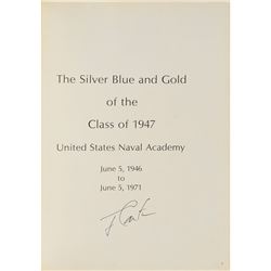 Two yearbooks: a 40th anniversary United States Naval Academy class of 1947 yearbook, leather-bound hardcover, 9 x 11.25, 360 pages, signed below his