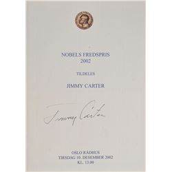 Two items: a program for the 2002 Nobel Peace Prize Award Ceremony held in Oslo on December 10, 2002, 5.75 x 8.25, signed on the front cover in black