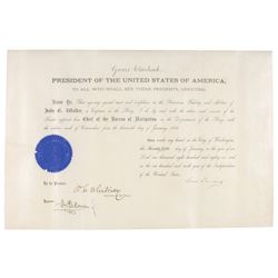 Partly-printed vellum DS as president, one page, 15.25 x 18.75, January 16, 1907. President Roosevelt appoints Renier J. Straettan as "Assistan...