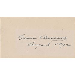 Neat ink signature, "Grover Cleveland, August 1892,” on an off-white 3.5 x 2 evenly clipped card. In fine condition.