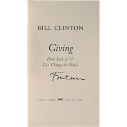 Two books: a first edition of Giving, hardcover with dust jacket, signed on the title page in black ink, "Bill Clinton"; and a first editi...