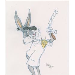 (Warner Brothers Studios, circa 1990s) Original drawing by Virgil Ross of Bugs Bunny as a barber, based on the 'Rabbit of Seville' cartoon, ...