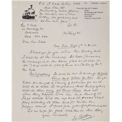 Rare ALS, one page, 5.5 x 9.5, Hotel Walton letterhead, September 30, 1904. Letter to author and friend Emerson Hough, in full: "Send me Mr. Ac...
