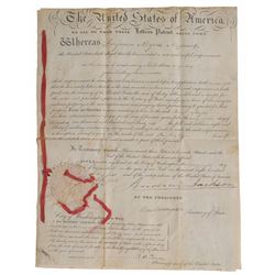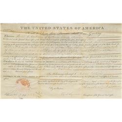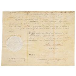 Partly-printed vellum DS as president, one page, 15.5 x 9.5, March 1, 1831. President Jackson grants Irvine O. Hockaday of Callaway County, Missouri,