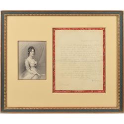 ALS signed “D. P. Madison,” one page, 7.75 x 9.75, September 26, 1838. Letter to Dr. Thomas Sewall, in part: "The valued offering of your able ...