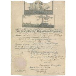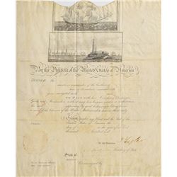 Partly-printed vellum DS as president, one page, 10.75 x 15, November 11, 1833. Scallop-topped ship's pass issued for "the Ship Wilmington ...