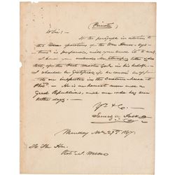 ALS as president, one page, 7.75 x 10, November 29, 1847. Addressed "Private" at the top, a letter to Secretary of the Treasury Robert J. ...