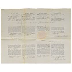 Partly-printed DS as president, one page, 21.75 x 17.5, July 5, 1876. Four language ship's paper issued to "Stephen Flanders master or comm...