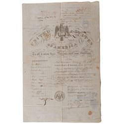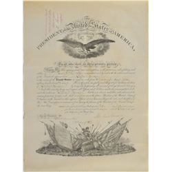 Partly-printed DS as president, one page, 22.25 x 17.5, August 9, 1855. Four-language ship’s papers issued to “John L. Dennis master or commander of t