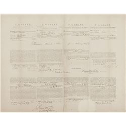 Partly-printed DS as president, signed “J. Tyler,” one page, 20.75 x 16, September 24, 1845. Four-language ship’s papers issued to John E. Brayton, “m