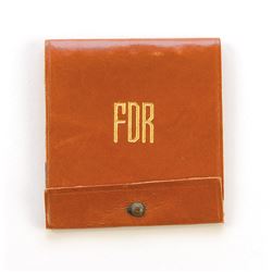 President Roosevelt’s personally-owned and -used fine quality brown leather matchbook, measuring 2 x 2.25 closed, featuring his gilt-embossed initials