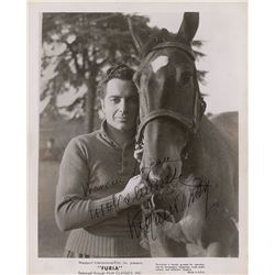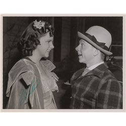 Vintage glossy 10.25 x 8 photo of Garland smiling with Mickey Rooney in the 1938 film Love Finds Andy Hardy, signed in green fountain pen. In fine con