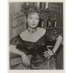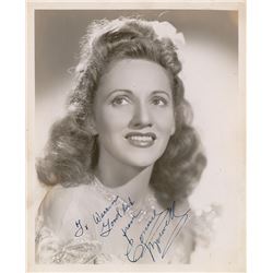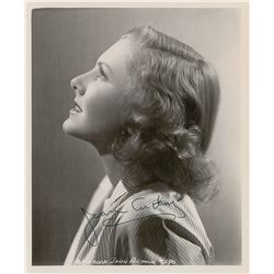Two photos: a glossy 8 x 9.75 Columbia Pictures studio portrait of Arthur in a lovely profile pose, signed in black felt tip, "Jean Arthur"...