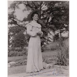 Vintage glossy 7.5 x 9.25 full-length photo of Hepburn as Rose Sayer from the 1951 film The African Queen, signed in blue fountain pen by Hepburn. In