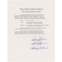 DS, signed “Steven T. McQueen,” one page, 8.5 x 11, July 9, 1996. A waiver of notice and consent to the holding of a special meeting by the board of d