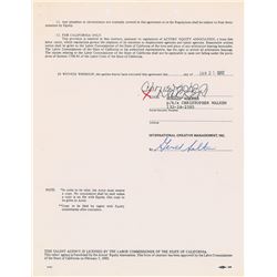 Group of four contracts signed by actors, dated from 1960 to 1987, including: Christopher Walken, Bruce Willis, Tommy Lee Jones, and Jon Voight. In ov