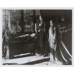 Glossy 10 x 8 photo of Borland standing beside Bela Lugosi in the 1935 film Mark of the Vampire, signed in silver ink by Borland. In very good to fine