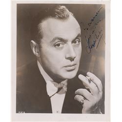 Vintage glossy 8.25 x 10 studio portrait of Boyer smoking a cigarette in a close-up pose, signed and inscribed in fountain pen, "To Warren, bes...