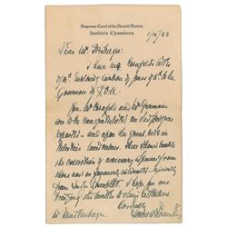 ALS, one page, 5 x 8, Supreme Court letterhead, January 15, 1933. Letter to American Zionist David Freiberger, in part: "I have seen Cornfeld...