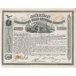 Partly-printed DS, signed “Wm. G. Fargo,” one page, 12 x 9.5, December 15, 1868. Stock certificate for one half of a share in the American Merchants U