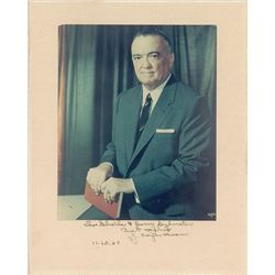 Color glossy 6.5 x 8 photo of Hoover affixed to its original 9 x 11.25 mount, signed and inscribed on the mount in fountain pen, “To Sheila & La...