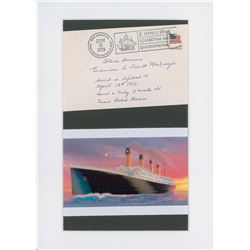 Postal cover, 5.75 x 3.75, postmarked at Point Reyes Station, California, on June 16, 1979, signed in black ballpoint, "Titanic Survivor, Edwin...