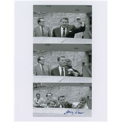 Uncommon 8.5 x 11 heavy paperstock photo of three images of Special Agent In Charge Jerry Parr pushing President Reagan into a limousine during the 19