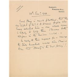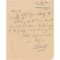 British Field Marshal (1861-1936) who led the Egyptian Expeditionary Force in Palestine and Syria during World War I. ALS signed “Allenby,” one page,