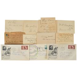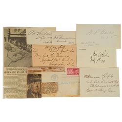 Collection of 12 items, consisting mostly of slips or cards, ranging in size from 3.25 x 1.5 to 6.5 x 3.5, each signed in ink by a notable hero of the