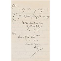 ALS signed “Winf'd S. Hancock,” one page both sides, 5.5 x 8.5, June 20, 1882. Letter to General Henry L. Abbot, commanding officer of the Torpe...