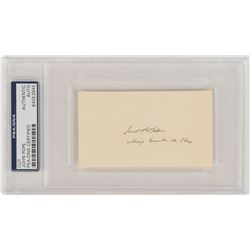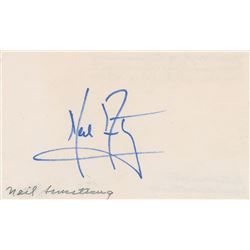 Blue felt tip signature, "Neil Armstrong,” on an off-white 5 x 3 card. Collector's notations on reverse indicate that the signature was obt...